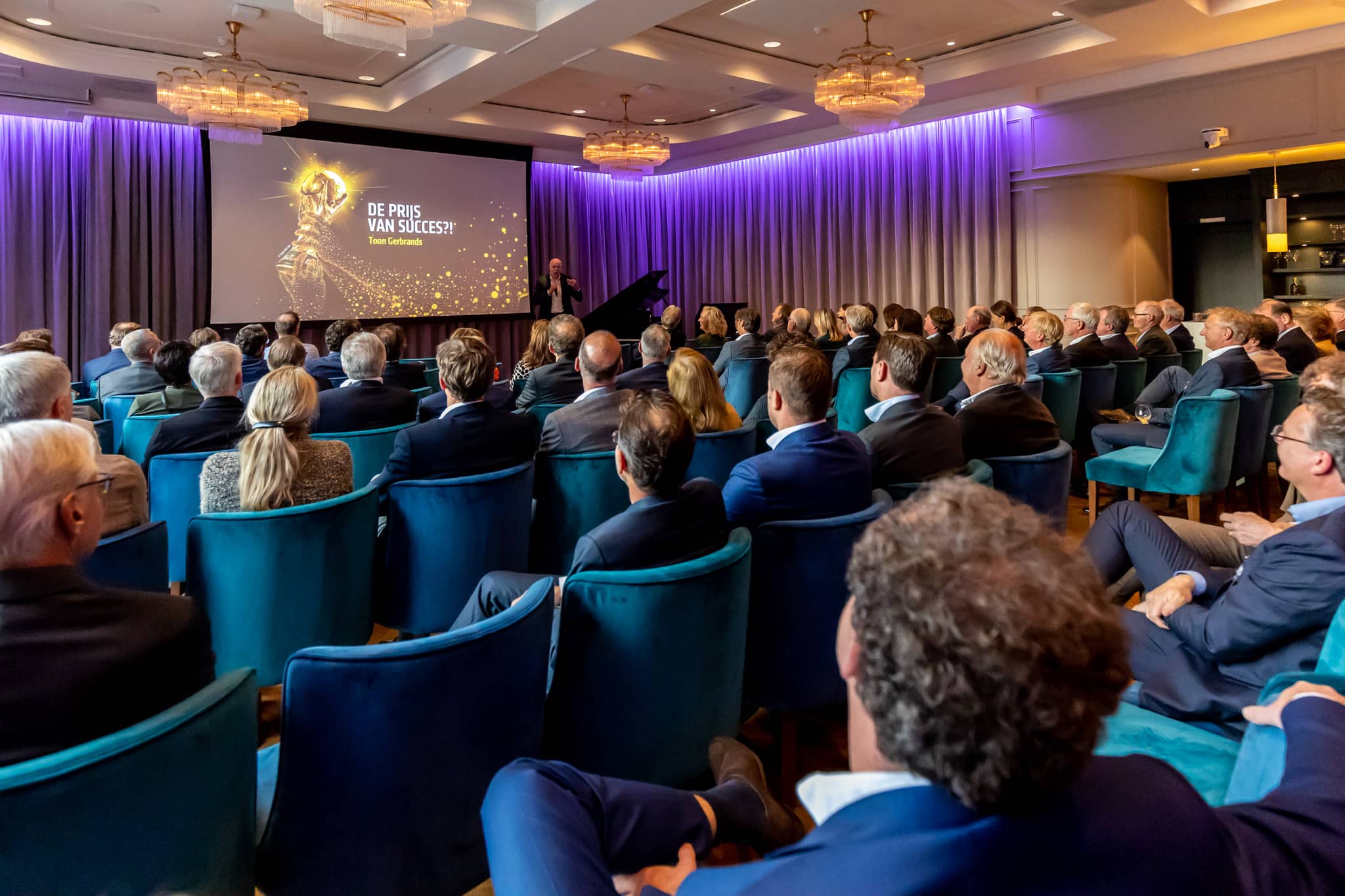 Na elkaar anderhalf uur te hebben uitgedaagd was het tijd voor een glas bubbels. Dit werd gevolgd door een bruisend praatje van Toon Gerbrands, voormalig directeur van PSV en oud-bondscoach van het Nederlandse mannenvolleybalteam. Of zoals hij het zelf samenvatte: ‘ik heb veertig jaar in omgevingen van presteren gewerkt.’ In die rollen heeft hij te maken gehad met bekende commissarissen als Jan Hommen, Ton van Veen en Klaas Dijkhoff. De verhouding met commissarissen vergelijkt hij met die tussen trainer en speler. ‘In beide gevallen is er een soort kleedkamerbenadering. Als de deur dicht is, is er een veilige omgeving, dan mag alles gezegd worden en mag je het oneens zijn. Eenmaal naar buiten vorm je één front.’